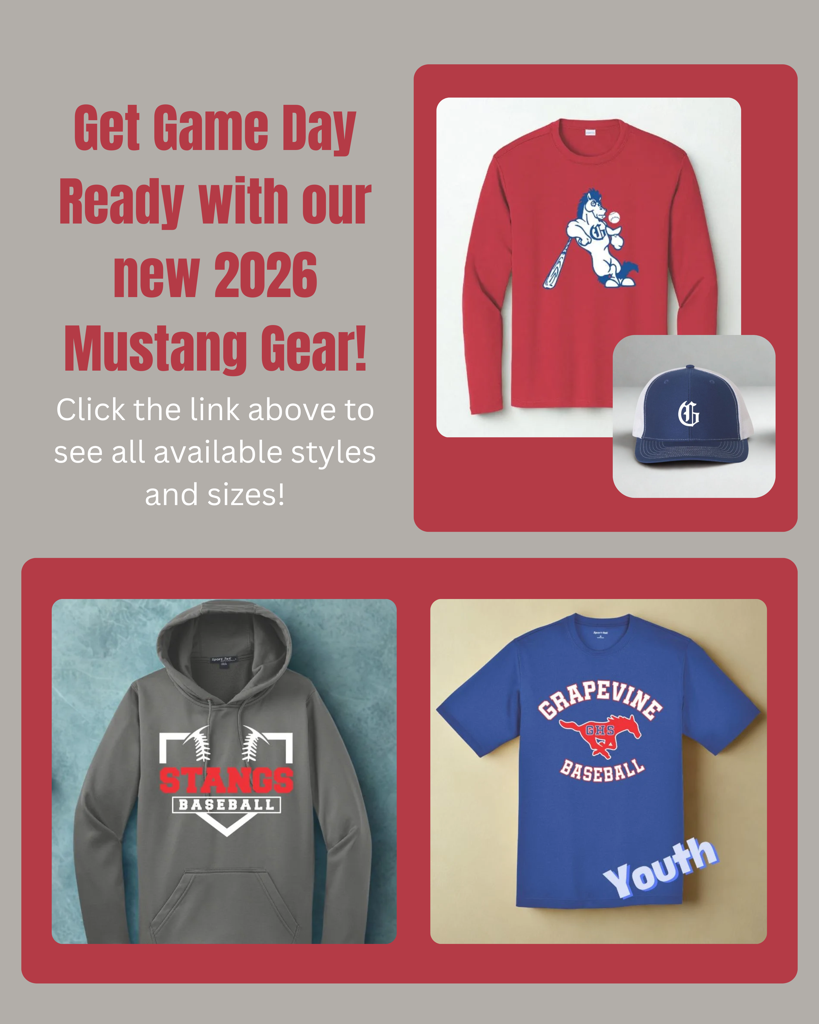 The official site for Grapevine High School Baseball, 3223 Mustang Drive, Grapevine, TX 76051. This site is sponsored by the The Tenth Man Club, a booster organization in support of the Grapevine High School Baseball Program (P.O. Box 383, Colleyville, TX 76034)
